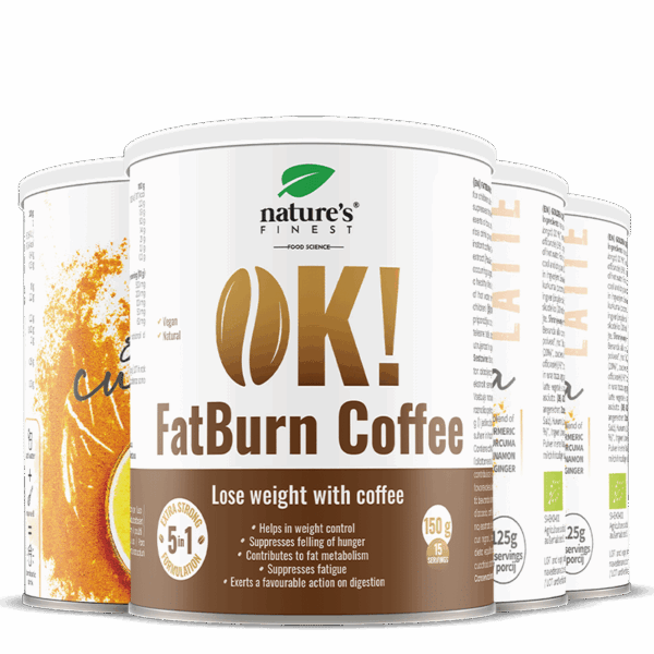 • OK!FatBurn Coffee: S aktivnim sastojcima L-karnitin, ekstrakt bazge i guarane – Pomaže u metabolizmu masti, smanjuje želju za hranom i potiskuje osjećaj gladi