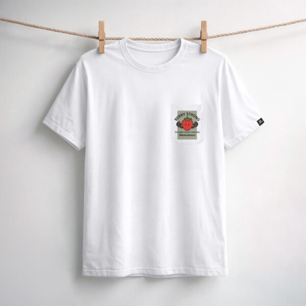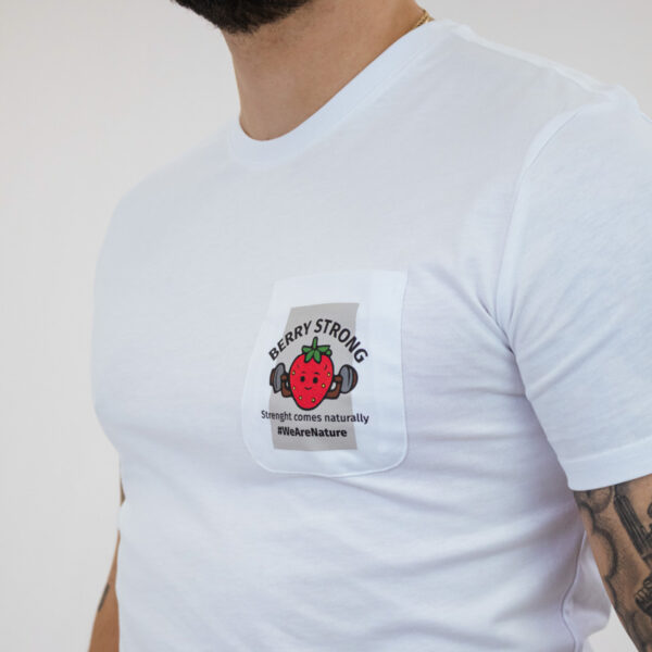 Bijela majica s upečatljivom ilustracijom jagode koja diže utege i odvažnim tekstom “BERRY STRONG”.Uz slogan “Snaga dolazi prirodno”, ova majica je zabavan i motivirajući način da pokažete svoju prirodnu snagu.
