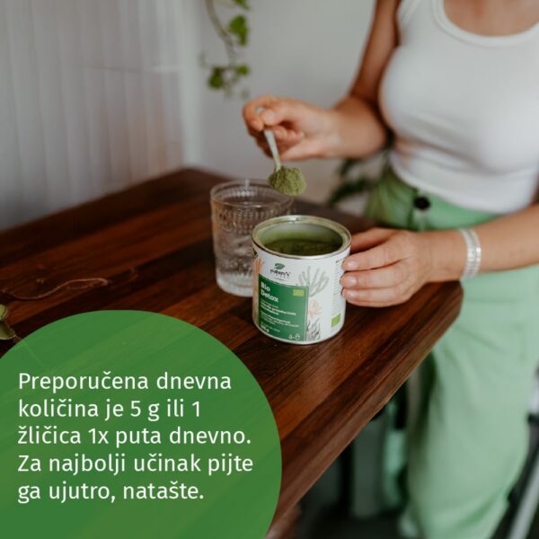 Preporučena dnevna količina je 5 g ili 1 žličica 1x puta dnevno. Za najbolji učinak pijte ga ujutro, natašte. Za bolji okus može se umiješati u svježe iscijeđeni sok od limuna ili naranče i vodu.