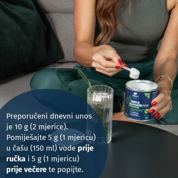Preporučeni dnevni unos je 10 g (2 mjerice). Pomiješajte 5 g (1 mjericu) u čašu (150 ml) vode prije ručka i 5 g (1 mjericu) prije večere te popijte.