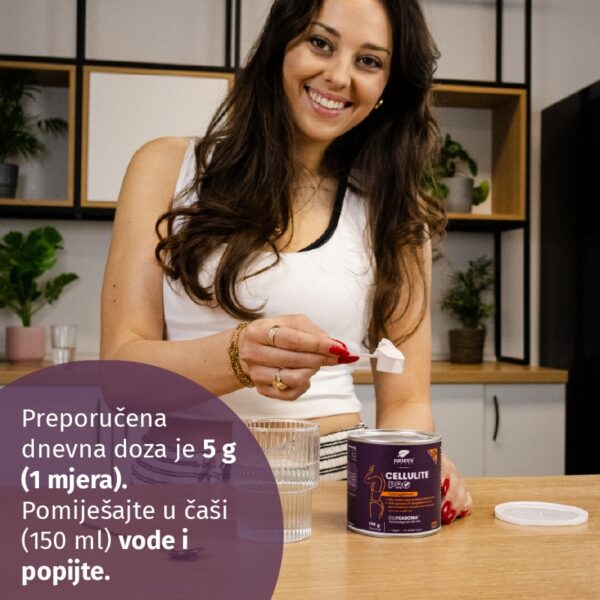 Preporučena dnevna doza je 5 g (1 mjera). Pomiješajte u čaši (150 ml) vode i popijte.