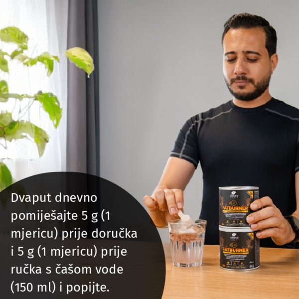 Preporučena dnevna doza je 10 g. Dva puta dnevno pomiješajte 5 g (1 mjericu) prije doručka i 5 g (1 mjericu) prije ručka s čašom vode (150 ml) i popijte.