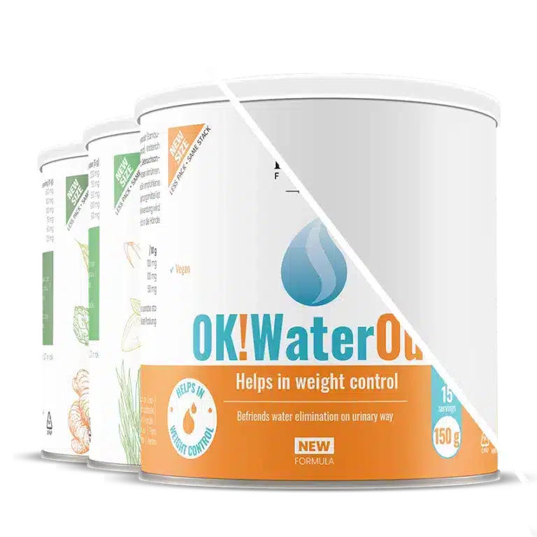 OK!WaterOut je prirodni napitak koji sadrži učinkovite prirodne sastojke koji pomažu poticati cirkulaciju¹, pomažu u kontroli tjelesne težine² i pomažu pri izlučivanju vode putem mokraćnog sustava⁴.