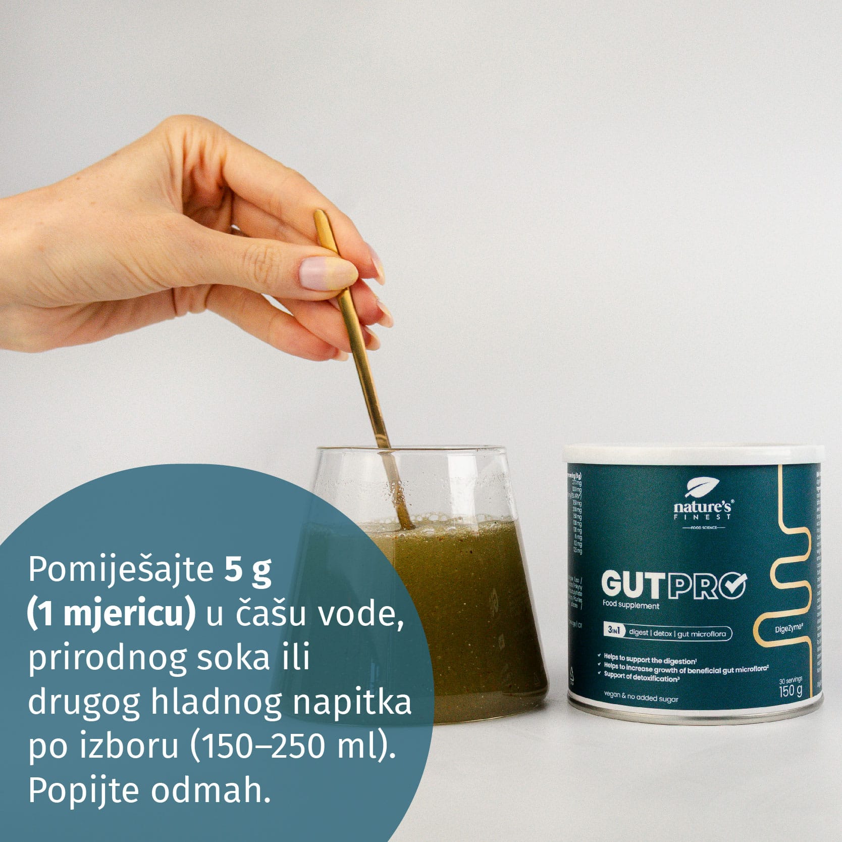 Ovo nije kratkoročno rješenje, već vrhunska formula za trajan učinak. GutPRO u jednoj jednostavnoj formuli spaja potporu probavi⁷, detoksikaciji³ i crijevnoj mikroflori³, pa vam je lakše ostati dosljedni.