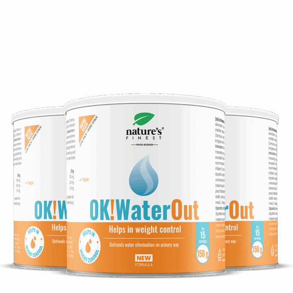 OK!Waterout je prirodan napitak koji sadrži učinkovite prirodne sastojke koji zajedno potiču dobru cirkulaciju¹, pomažu u kontroli tjelesne težine² i potiču izlučivanje vode mokraćnim putem³.