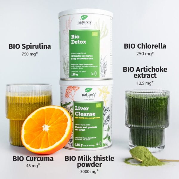 Liver cleanse čisti jetru nezamjenjivom snagom sikavice i kurkume. S druge strane, Bio Detox dizajniran je da ubrza proces detoksikacije i opskrbi tijelo važnim hranjivim tvarima.